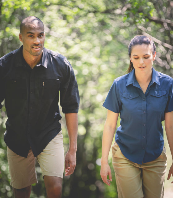 Our men’s and ladies’ sun protection shirts are made from an ultra-soft S.Cafe® blend fabric so you can stay cool and comfortable on sunny days.